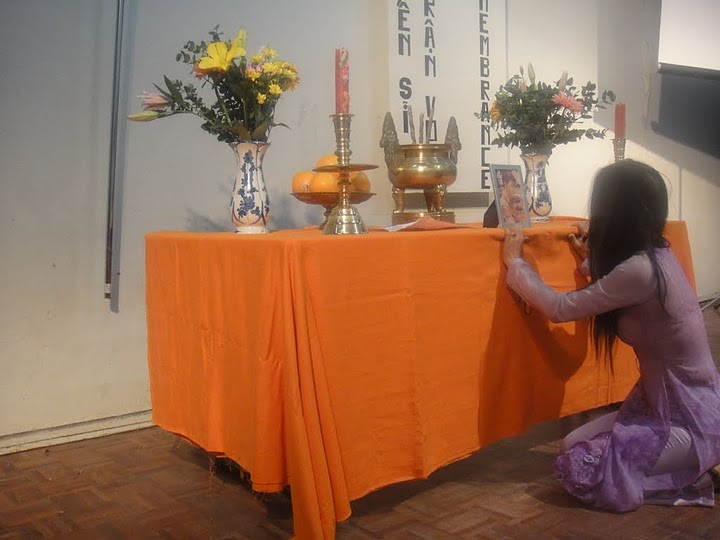 Chúng con xin nguyện cầu cùng các đấng oai linh,các bậc tiền nhân, anh hùng,liệt nữ hãy phù hộ cho những chiến sĩ trong và ngoài nước vẫn còn đang tranh đấu để dành lại Tự Do Dân Chủ cho Việt Nam."